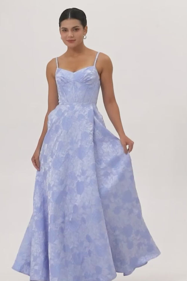 Blaues A-Linie Korsett Langes Ballkleid mit Schlitz in A-Linie