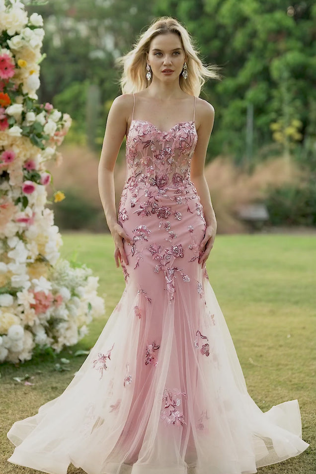 Blush Meerjungfrau Korsett Appliziertes Langes Ballkleid mit Perlen