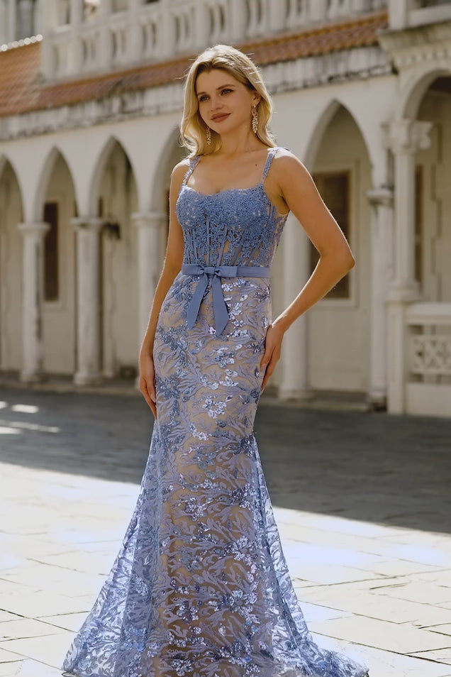 Meerjungfrauen Graublaues Korsett Pailletten Langes Ballkleid mit Schleife