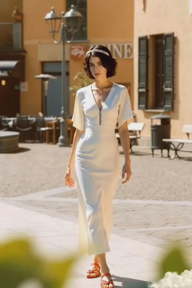 A-Linie V-Ausschnitt Langes Weißes Hochzeitsgastkleid