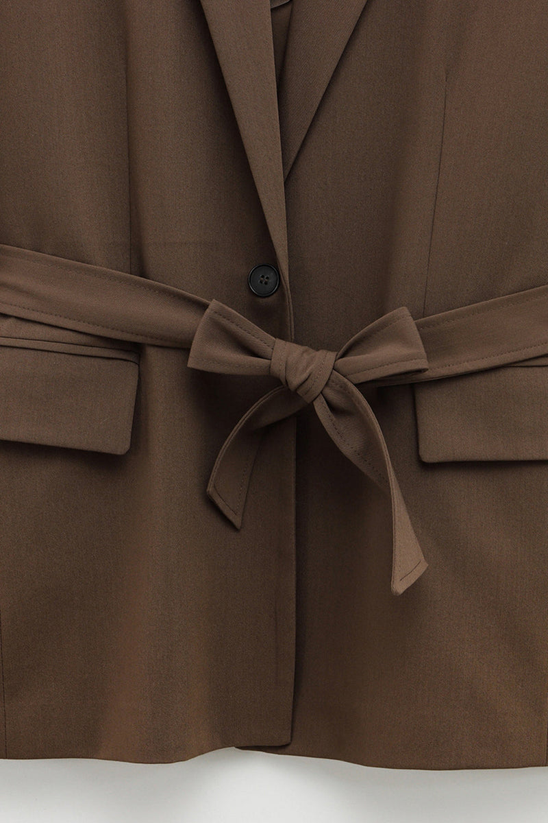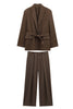 Kaffee 2 Stück gekerbtes Revers Frauen Ballanzüge mit Gürteln