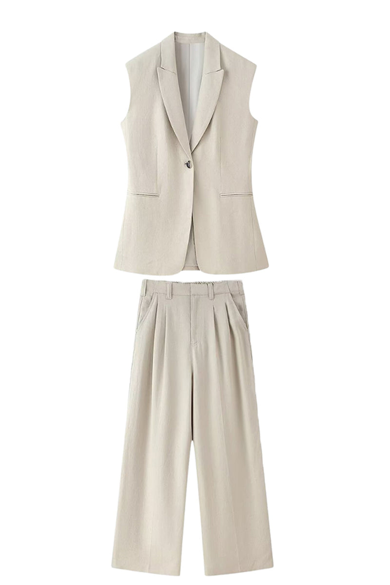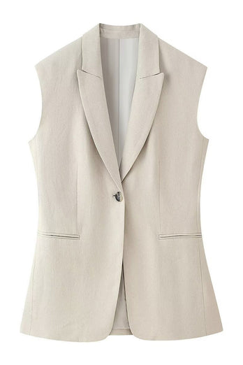 Kahki 2-teiliger Peak Lapek Ärmellose Damen Ballanzüge