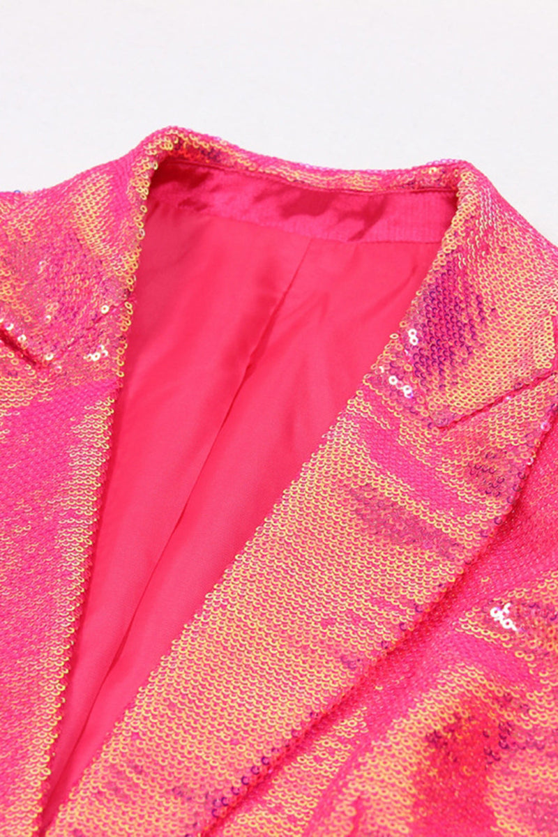 Glitzernde Fuchsia 2 Stück Peak Revers Damen Anzüge mit Taschen