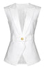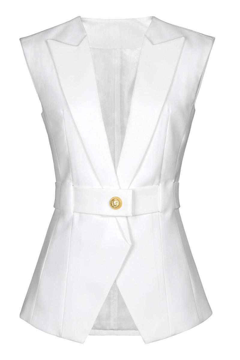 Weißer Peak Revers Ärmelloser Satin Damen Blazer