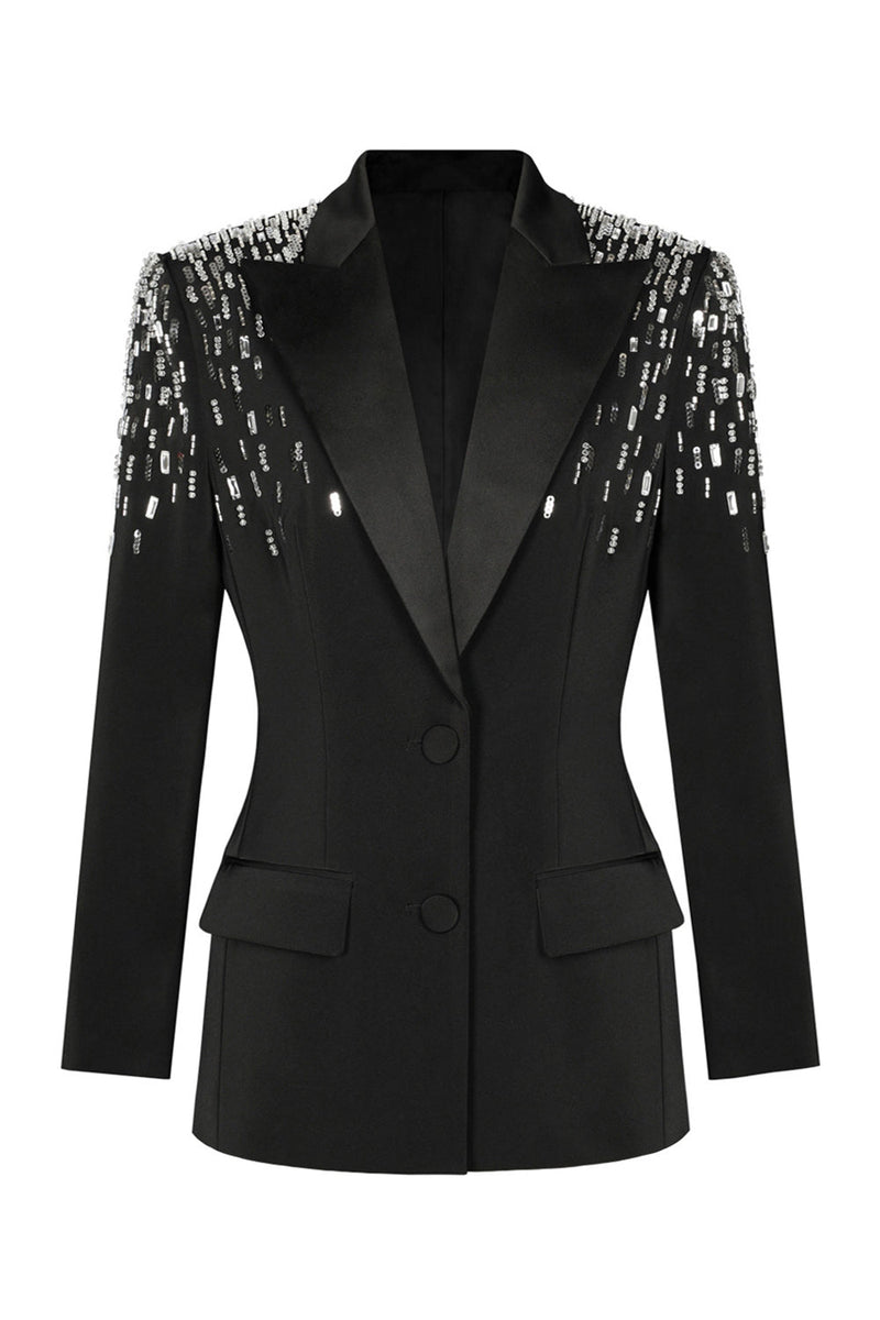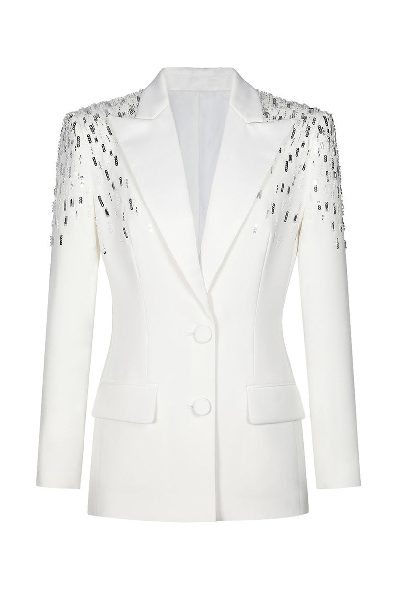Weißer Peak Revers Einreihiger Damen Ballblazer mit Pailletten