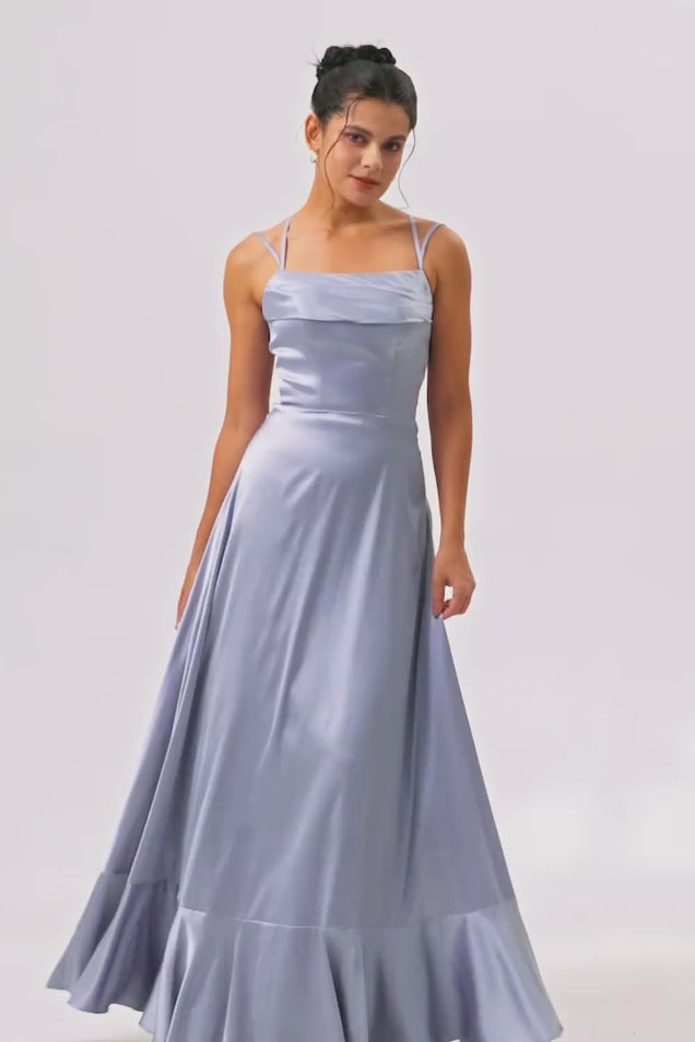 Staubblaues Langes Brautjungfernkleid in A-Linie mit Schnürung am Rücken