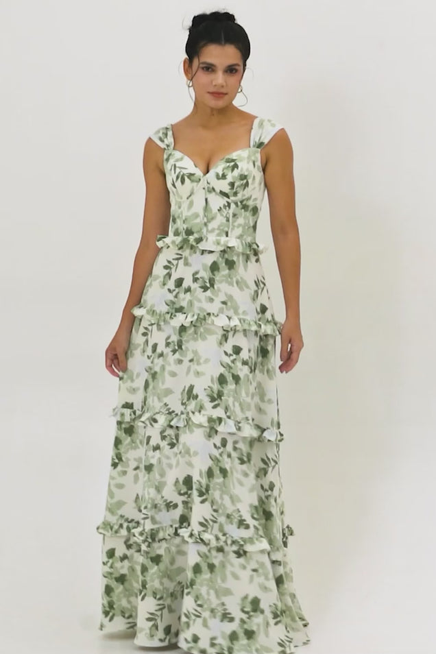 Grünes Blumen Korsett A-Linie Brautjungfernkleid mit Rüschen