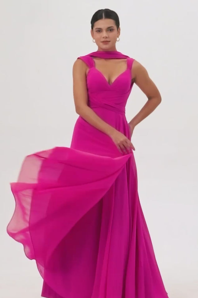 Fuchsia A Linie Wandelbares Chiffon Brautjungfernkleid mit Schlitz