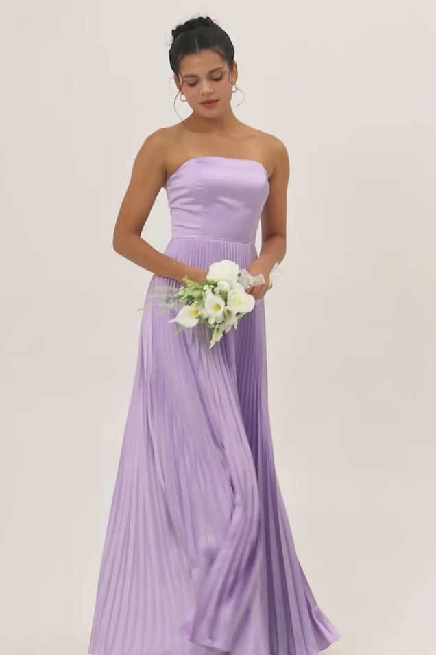 Trägerloses Plissiertes Flieder Langes Brautjungfernkleid in A-Linie