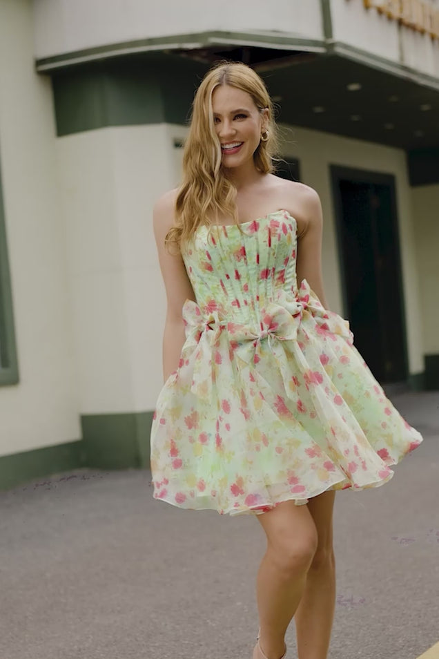 Blumengrünes Trägerloses A-Linie Korsett Abiballkleid