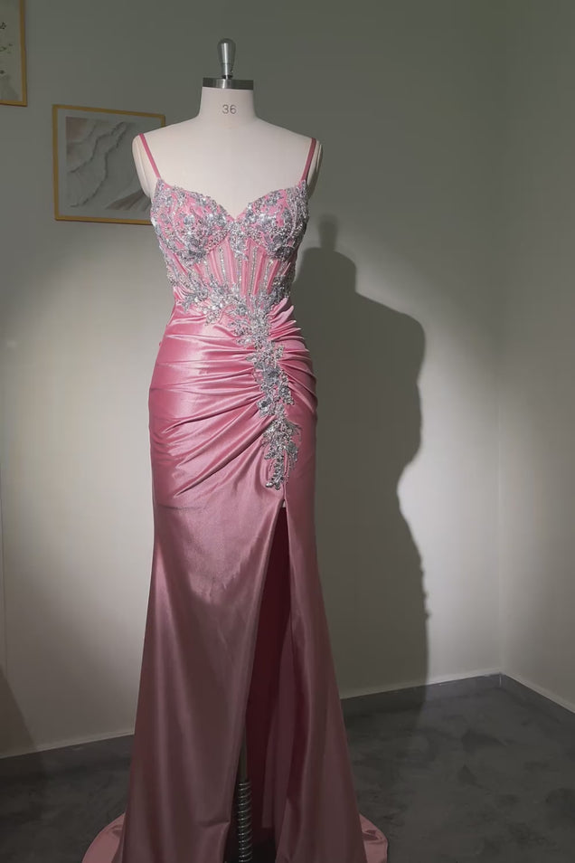 Blush Meerjungfrau Korsett Pailletten Langes Ballkleid mit Schlitz