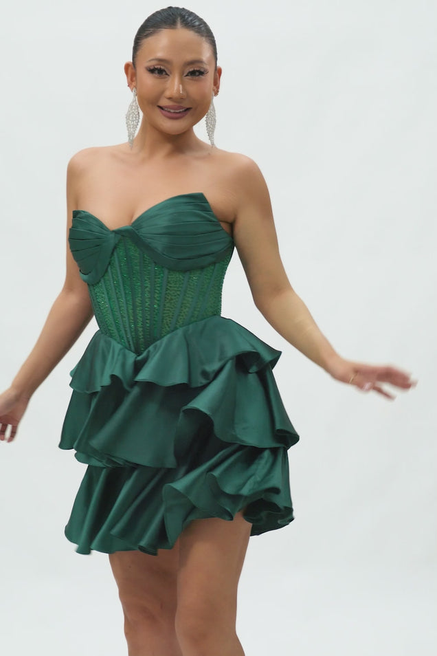 Dunkelgrünes Trägerloses Korsett Korsett Cocktailkleid in A-Linie mit Perlen