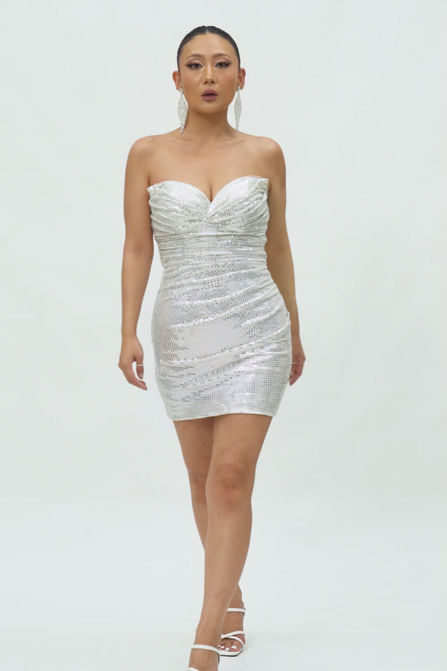 Funkelndes Schwarzes Trägerloses Enges Kurzes Cocktailkleid mit Pailletten