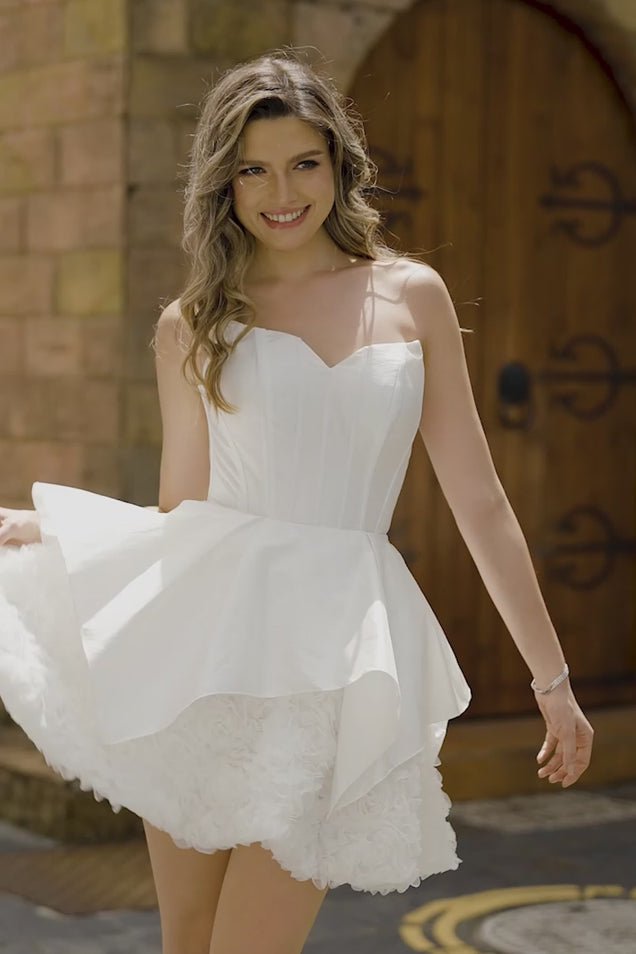 Trägerloses Weißes Korsett A Linie Kurzes Cocktailkleid
