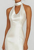 Ärmelloses Neckholder Etui Weißes Langes Standesamtkleid