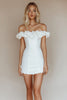 Bodycon Weißes Schulterfreies Kurzes Standesamtkleid aus Satin