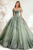 Dusty Sage Ballkleid Schulterfreies Quinceanera Kleid aus Tüll mit Applikationen