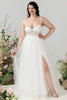 Elfenbein Spaghettiträger Tüll A Linie Brautkleid mit Schlitz