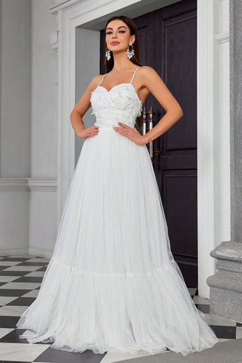 Elfenbein Plissiertes A-Linie Spaghettiträger Langes Brautkleid