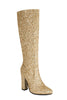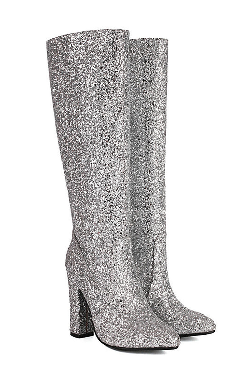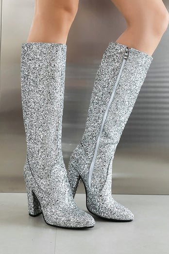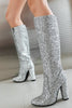 Glitzernde blaue Cowgirl-Stiefel mit hohen Absätzen
