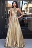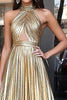 Goldenes Langes A-Linie Neckholder Metallic Ballkleid mit Falten