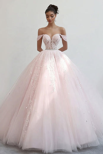 Prinzessin Rosa Ballkleid schulterfrei Tüll Quinceanera Kleid mit Applikationen, süße 16 Kleider, perfekt für Ball-Geburtstagskleider, Quinceanera-Kleider, Ballkleider, formelle Abendbälle, Hochzeiten, Cocktailparty-Festumzüge, Urlaub, Empfang, Tanzparty, Abschlussfeier, Berühmtheit und andere besondere Anlässe.
