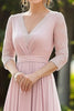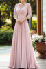 Rosa Elegantes Spitze Chiffon Kleid für die Brautmutter mit 3/4 Ärmeln