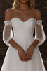 Herzausschnitt A Linie Tüll Illusion Halbarm Elfenbein Brautkleid