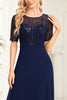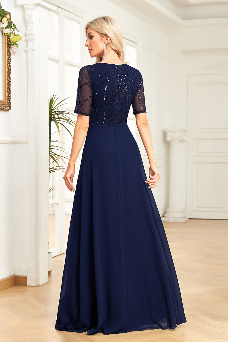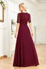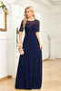 Schwarzes Rundhalsausschnitt A Linie Chiffon Kleid für die Brautmutter mit halben Ärmeln