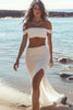 Weißes Schulterfreies Chiffon Standesamtkleid mit Schlitz
