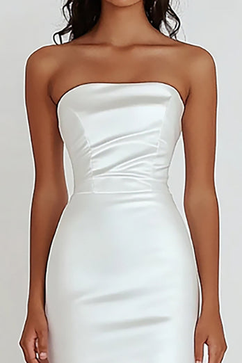 Weißes Trägerloses Standesamtkleid aus Satin mit Rüschen
