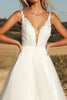 Elfenbein A-Linie V-Ausschnitt Tüll Brautkleid mit Spitze Applikation